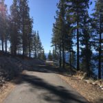 Sand Harbor Lake Tahoe Nevada State Park の北端にあるボートランプの数十メートル手前に到着。この先に州立公園料金所ブースがあり、州立公園に入園する場合は自転車と歩行者は1人2ドルの入園料を払います。この日は犬連れだったのでここでUターン。
